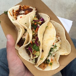 I had three tacos- grilled chicken, Korean beef, and shrimp taco. All were good. The shrimp taco was with guapo sauce and it was hot. They were out of salsa and guacamole and that's kinda big at a taco truck. Would've loved to try the pork belly taco also, but that's was gone too. Tacos were $3-4 a taco.